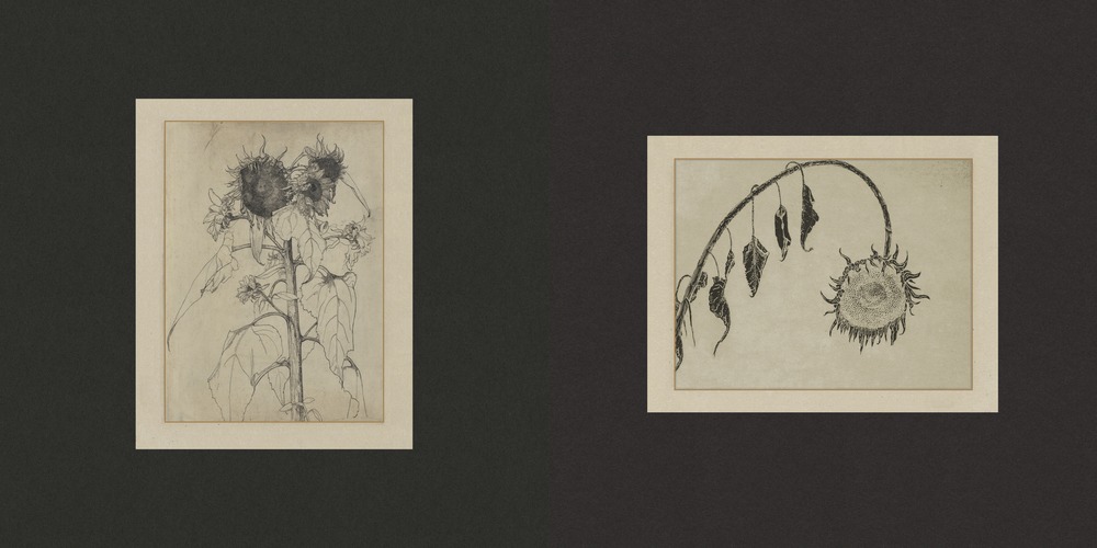 Framed Vintage Botanical Sunflower Sketch Antique Floral Illustrations Boho Nature Colorful Chic Living Room Bedroom Office White
