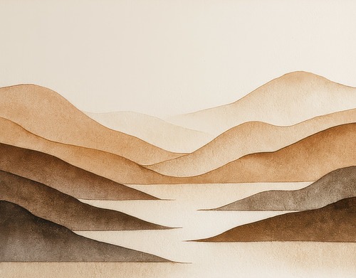 Extra Large Framed Neutral Earth Tone Hills Minimal Abstract Landscape Illustration Home Living Room Bedroom Decor (Frame Assembly Required)