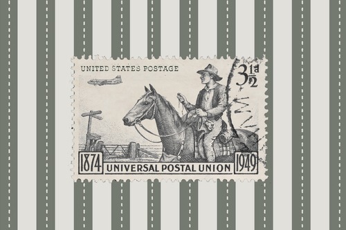 Framed Vintage Pony Express Stamp s Horseback Rider Postage Illustrations Decorative Boho RelaxZen Living Room Bedroom Office NATURAL