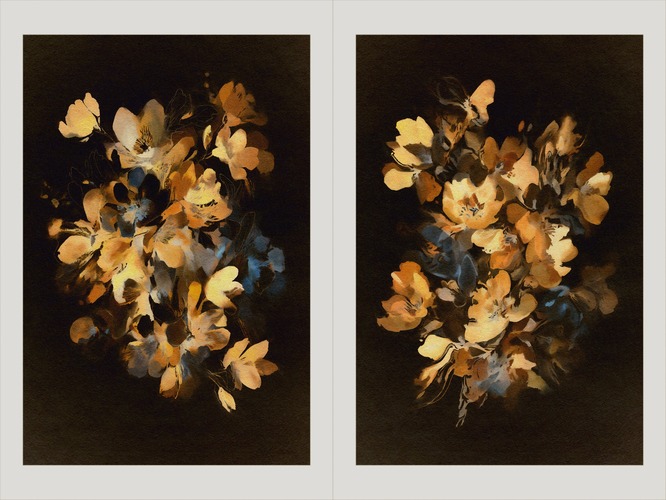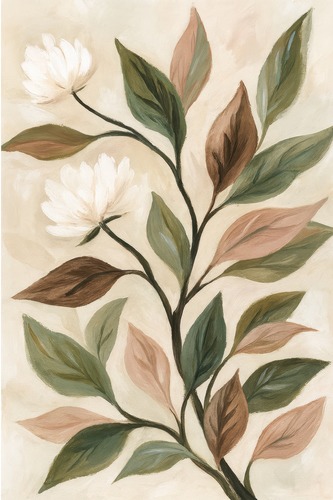 Neutral Botanical Beige Background Leaf and Flower Rustic Dramatic Dark Duotone Living Room Bedroom Office