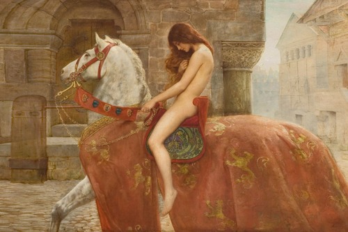 Extra Large Framed Lady Godiva Classic Historical of Woman on Horseback Home Living Room Bedroom Decor (Frame Assembly Required)
