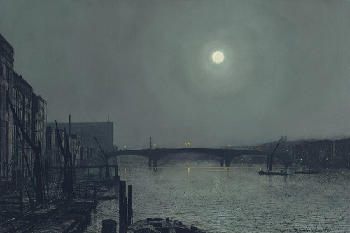 Framed Moonlit River Scene with Bridge Tranquil Night Cityscape Illustrations Digital Decorative Multicolor Rustic Minimal Bedroom Natural