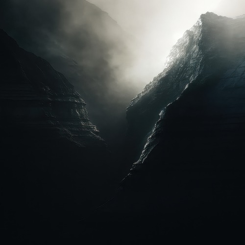Framed Misty Mountain Canyon Landscape Dark Moody Illustrations Rustic Zen Living Room Bedroom Office WHITE