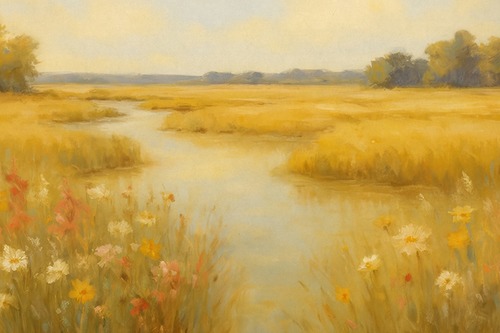 Golden Meadow with Wildflowers Landscape Rustic Countryside Fine Traditional Dramatic Multicolor Ultra Living Room Bedroom Office