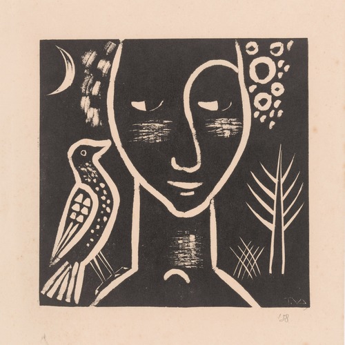 Framed Abstract Face and Bird Black and White Woodcut Illustrations RelaxCalm Warm Living Room Bedroom Office WHITE
