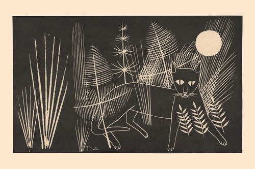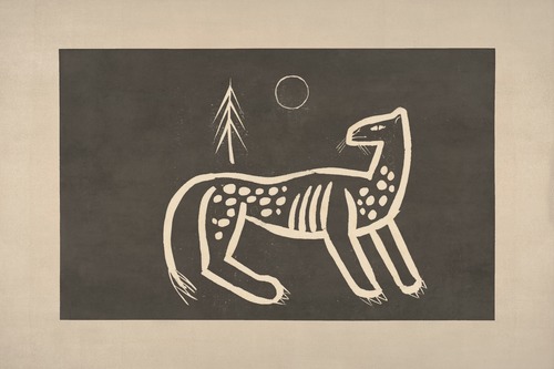 MUDECOR Framed Wild Cat in est Woodcut Black and White Minimalist Animal Illustrations Bohemian RelaxCalm Cool Living Room Bedroom Office NATURAL