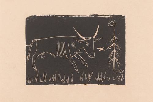 MUDECOR Framed Longhorn Bull Woodcut Minimalist Black and White Farm Animal Illustrations Bohemian RelaxCalm Cool Living Room Bedroom Office NATURAL
