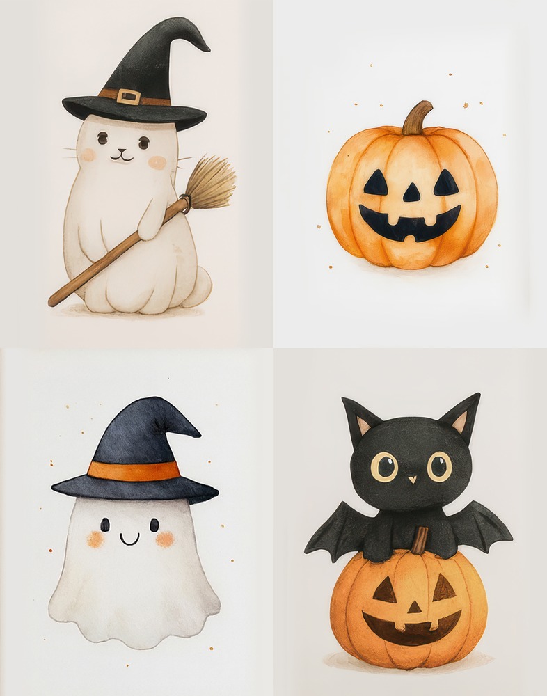 Poster Cute Halloween Cat Ghost Pumpkin Seal in Witch Hat Realism Decorative Living Room Bedroom Office