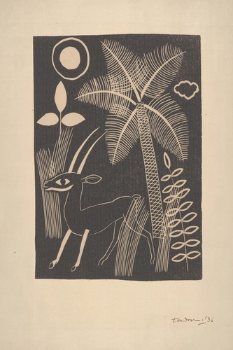 MUDECOR Framed Tropical Antelope Woodcut Black and White Wildlife and Botanical Illustrations Bohemian RelaxCalm Cool Living Room Bedroom Office NATURAL
