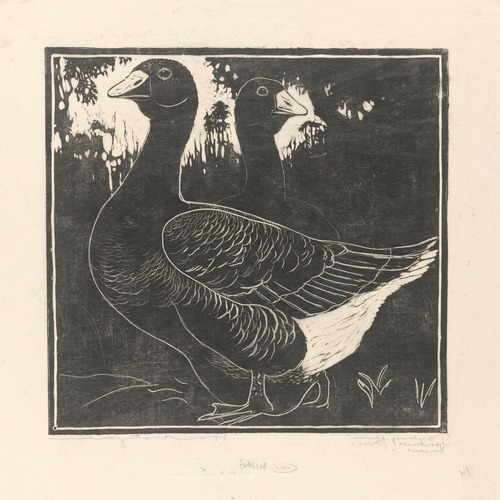 Framed Pair of Geese Black and White Woodcut Illustrations RelaxCalm Warm Living Room Bedroom Office Black