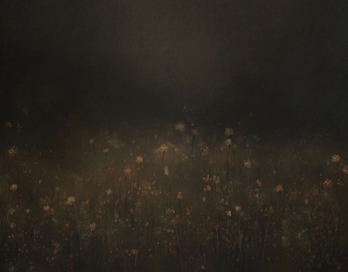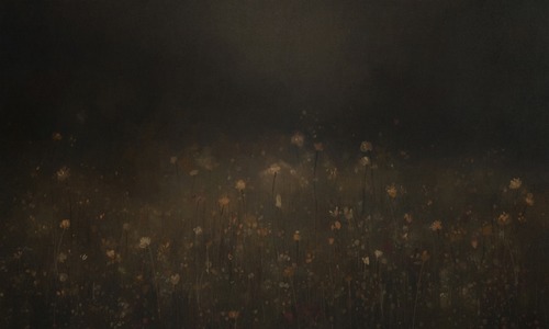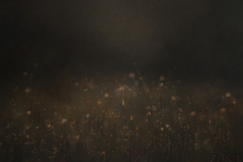 Extra Large Framed Dark Floral Meadow Moody Wildflower Field in Deep Earthy Tones Illustration Home Living Room Bedroom Decor (Frame Assembly Required)