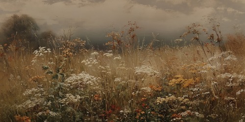 Framed Set Golden Field Wildflowers Rustic Autumn Meadow Illustrations Scenic Colorful Ultra Living Room Bedroom Office NATURAL