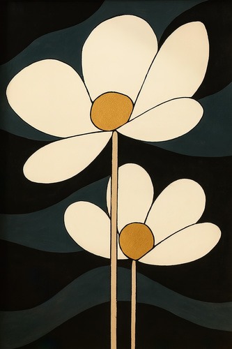 Framed Abstract Floral Minimalist White Flowers Illustrations Decorative Bohemian RelaxCalm Living Room Bedroom Office White