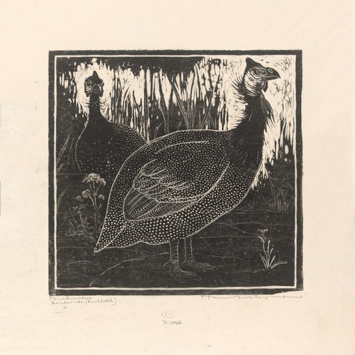 Framed Guinea Fowl Black and White Woodcut Illustrations RelaxCalm Warm Living Room Bedroom Office White