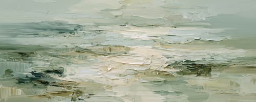 Framed Set Misty Horizon Neutral Landscape Soft Green and Beige Illustrations Decorative Scenic Rustic Living Room Bedroom Office NATURAL