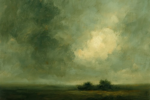 Large Framed Green Cloudy Sky Abstract Illustration Home Living Room Bedroom Decor (Frame Assembly Required)