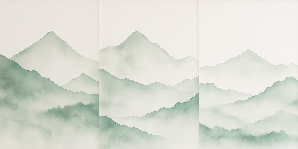 Framed Set Green Misty Mountains Watercolor Nature Landscape Illustrations Scenic Colorful Ultra Living Room Bedroom Office Natural