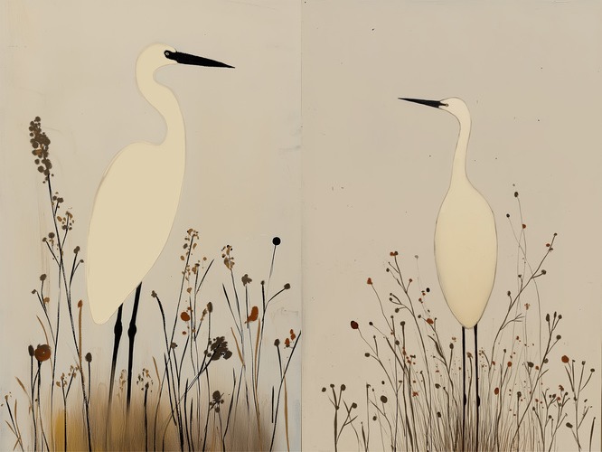 MUDECOR Framed Elegant White Herons Minimalist Japanese Bird Illustration Illustrations RelaxCalm Living Room Bedroom Office WHITE