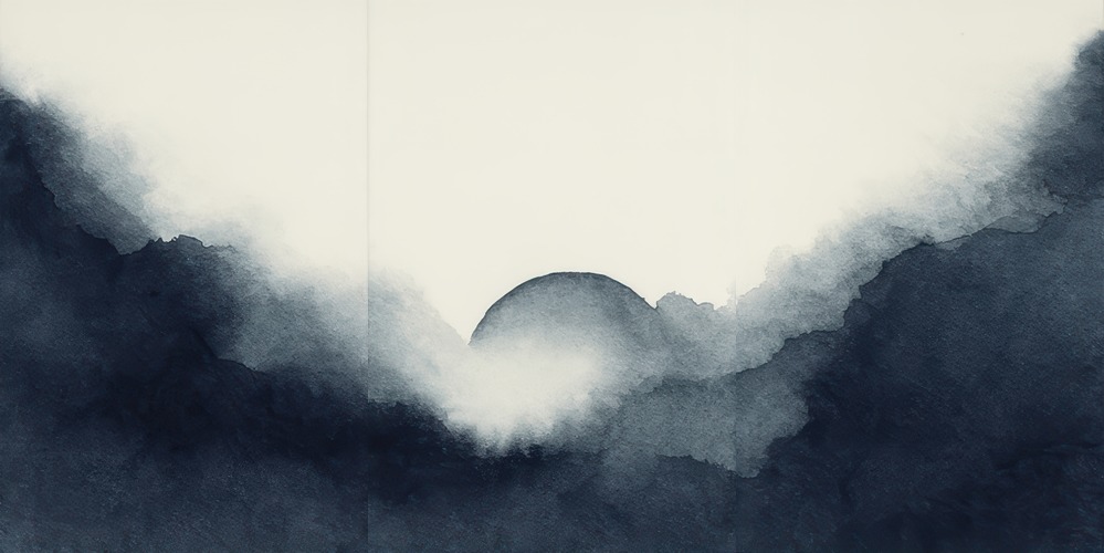 Framed Twilight Haze Abstract Minimalist Beige to Navy Ombre Illustrations Decorative RelaxZen Nordic Living Room Bedroom Office NATURAL