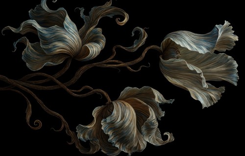MUDECOR Framed Petal Grayscale Textured Floral Macro Illustration RelaxCalm Warm work Black Frame