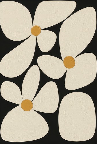 Premium Frame Minimalist Abstract Floral White Petals with Gold Centers Illustrations Fine Traditional Iconic Living Room Bedroom Office Black
