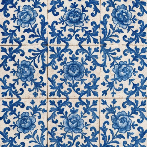 Large Framed Blue Floral Tile Pattern Illustration Home Living Room Bedroom Decor (Frame Assembly Required)