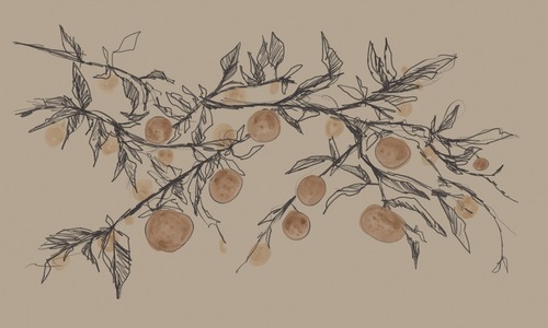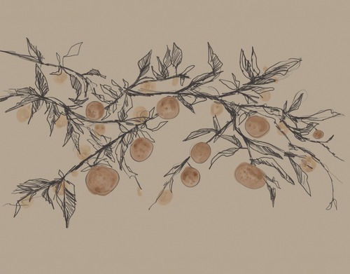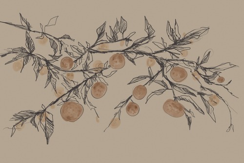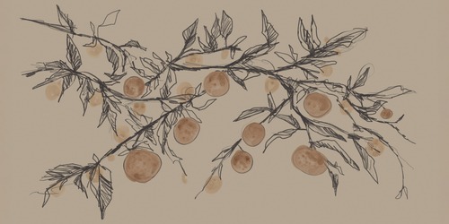 Extra Large Framed Botanical Branches with Rustic Fruit on Tan Home Living Room Bedroom Decor (Frame Assembly Required)