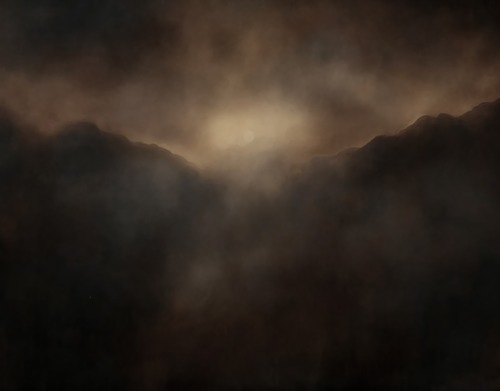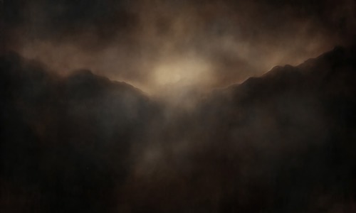 Extra Large Framed Dark Misty Mountain Horizon with Soft Light Home Living Room Bedroom Decor (Frame Assembly Required)