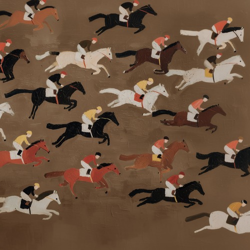 Large Framed Vintage Horse Racing Riders Illustration Home Living Room Bedroom Decor (Frame Assembly Required)