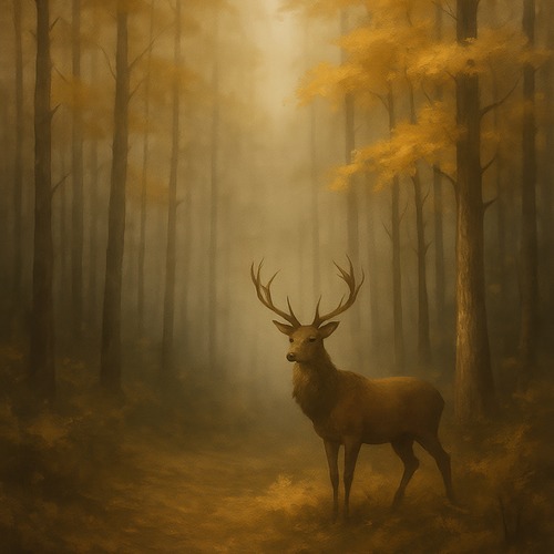 Large Framed Majestic Deer in Golden Woodland Illustration Home Living Room Bedroom Decor (Frame Assembly Required)