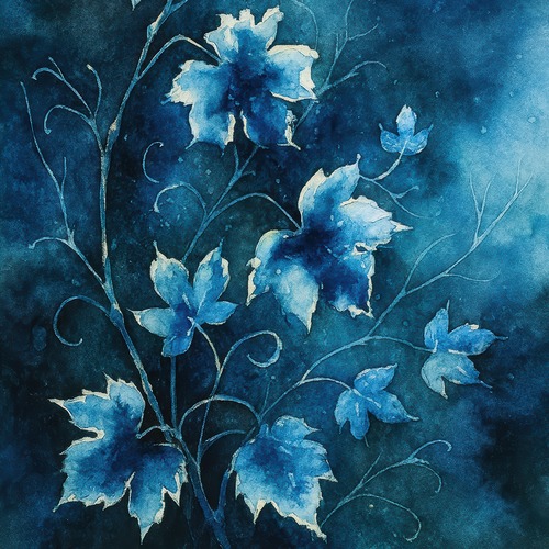 Large Framed Deep Blue Watercolor Floral Illustration Home Living Room Bedroom Decor (Frame Assembly Required)