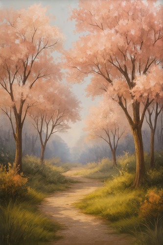 MUDECOR Premium Framed Charming Country Pathway Idyllic Spring Landscape Illustrations Impressionism Scenic Colorful Living Room Bedroom Office Gold