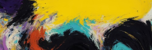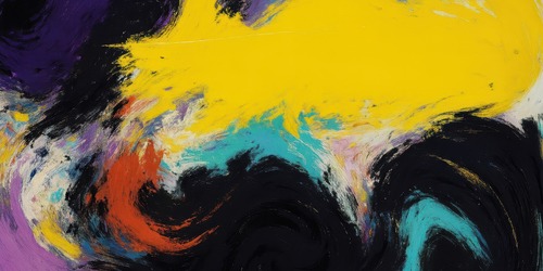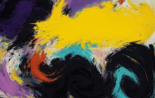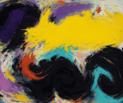 XL Framed Colorful Abstract Expressionism Bold Yellow Blue and Black Swirl Design (Frame Assembly Required)