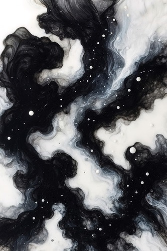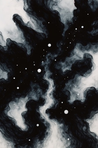 Framed Cosmic Abstract Black and White Swirling Clouds Illustrations Decorative Bohemian RelaxCalm Living Room Bedroom Office White