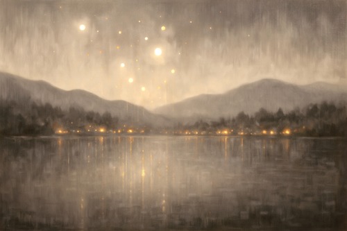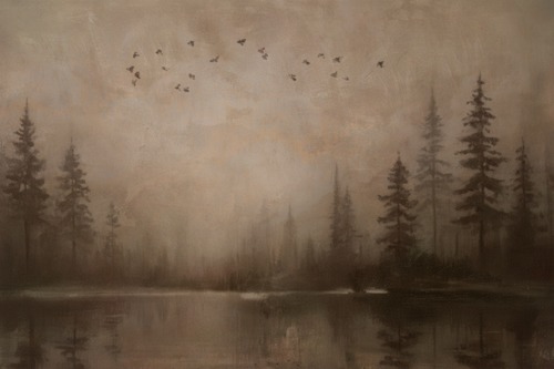 MUDECOR Premium Framed Gray Misty est Skyline Illustrations Fine Decorative Retro Multicolor Living Room Bedroom Office Natural