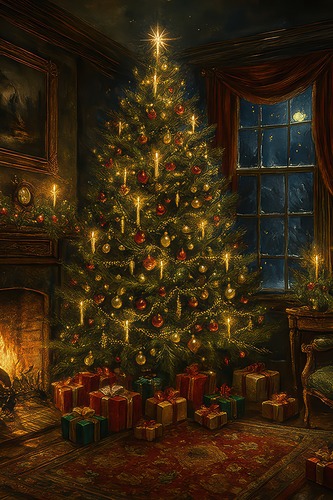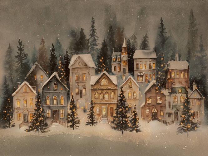 MUDECOR Premium Framed Winter Pine est Snowy Landscape Illustrations Fine Decorative Retro Historic Living Room Bedroom Office Gold