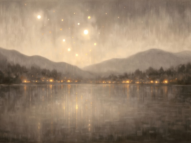 MUDECOR Premium Framed Golden Mist Abstract est Reflection Illustrations Fine Decorative Retro Historic Zen Living Room Bedroom Office Black