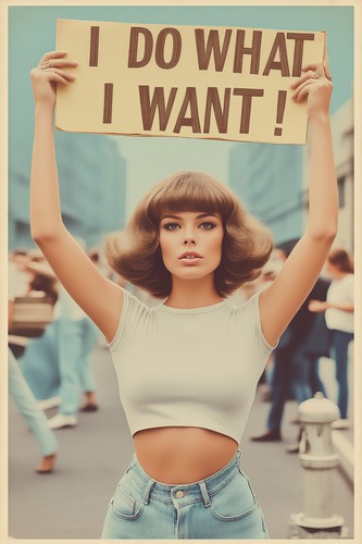 MUDECOR Framed Vintage Retro Woman Protest Poster I Do What I Want Illustrations Bohemian Living Room Bedroom Office BLACK