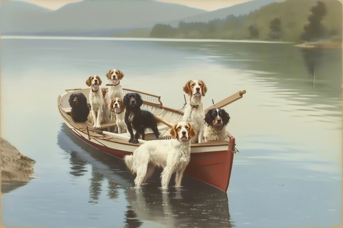 MUDECOR Framed Hunting Dogs in Boat Lake Landscape Vintage Animal Illustrations Bohemian Living Room Bedroom Office Natural