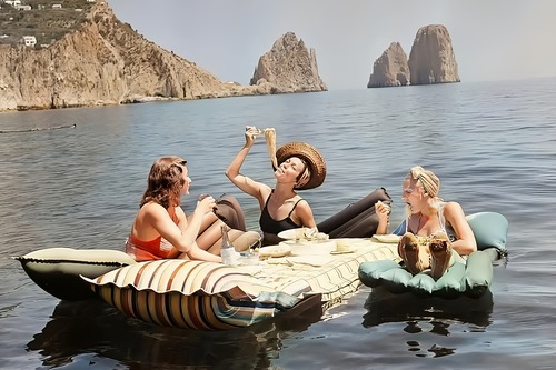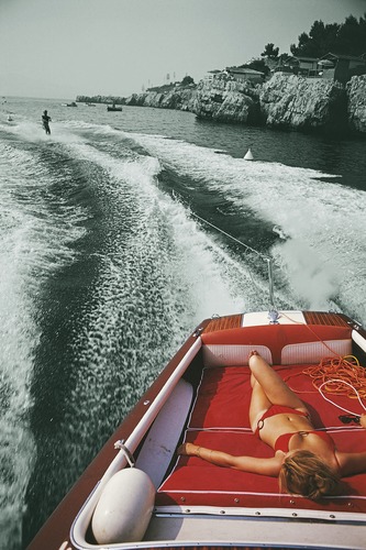 MUDECOR Framed Retro Boat Woman Sunbathing Summer Ocean Illustrations Bohemian Living Room Bedroom Office WHITE