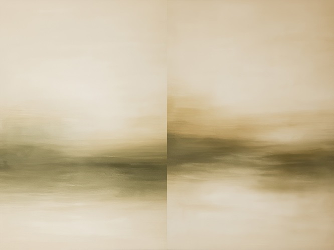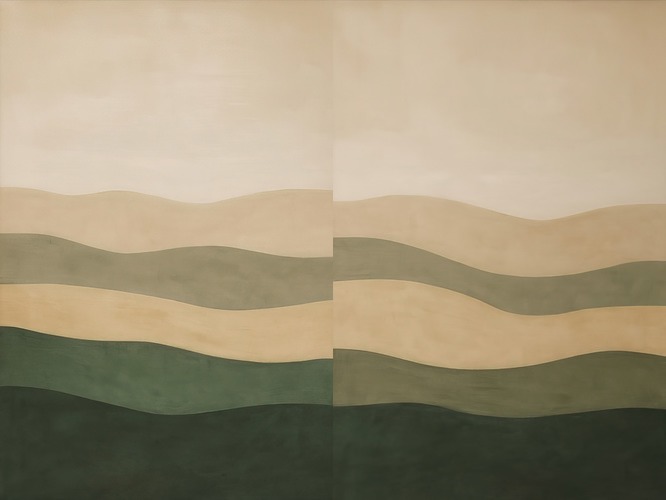 Framed Set Golden Horizon Mist Neutral Beige and Olive Gradient Abstract Landscape Zen Bohemian Living Room Bedroom Office NATURAL
