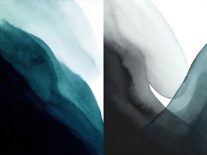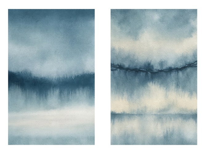 MUDECOR Framed Set Blue Abstract Landscape Misty Lake Illustrations Decorative Bohemian CalmZen Living Room Bedroom Office Black