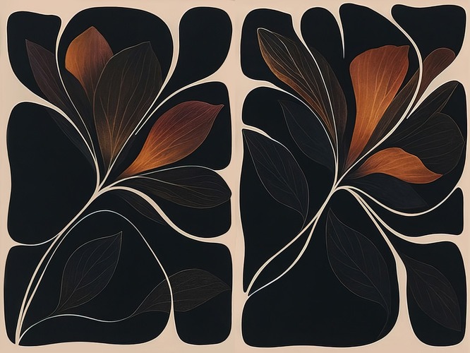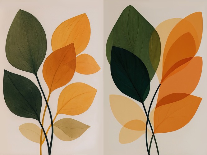 MUDECOR Framed Set Green and Orange Leaf Botanical Illustrations Decorative Bohemian CalmZen Living Room Bedroom Office BLACK