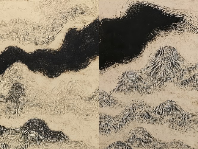 Framed Set Minimalist Line Black Geometric Wave Pattern Illustrations Bohemian Nordic RelaxCalm Living Room Bedroom Office Natural