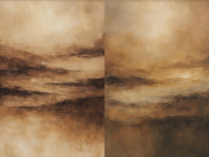 MUDECOR Framed Abstract Brown and Taupe Minimalist Misty Landscape Illustrations Decorative Bohemian Living Room Bedroom Office Black