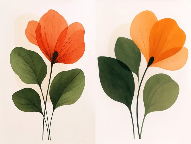 MUDECOR Framed Set Orange Floral Botanical Flower Illustrations Decorative Bohemian CalmZen Living Room Bedroom Office NATURAL