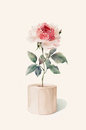 MUDECOR Framed Watercolor Pink Rose in Vase Minimalist Botanical Illustrations Bohemian Living Room Bedroom Office BLACK