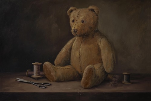 MUDECOR Framed Vintage Teddy Bear with Sewing Tools Still Life Illustrations Bohemian Living Room Bedroom Office BLACK
