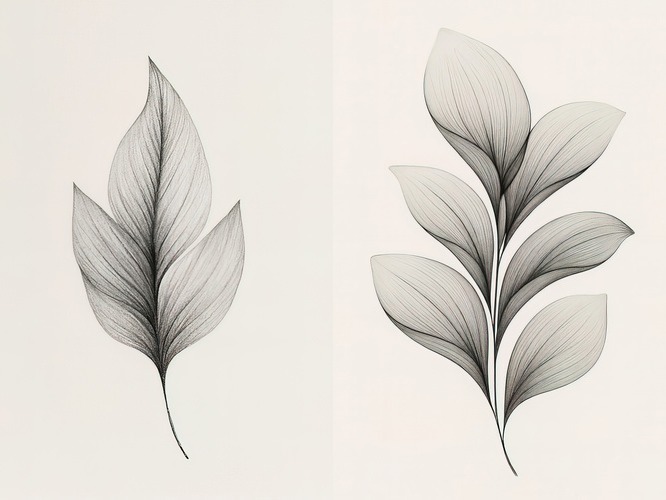 MUDECOR Framed Set Black and White Line Leaf Minimal Botanical Sketch Illustrations Decorative Bohemian CalmZen Living Room Bedroom Office NATURAL