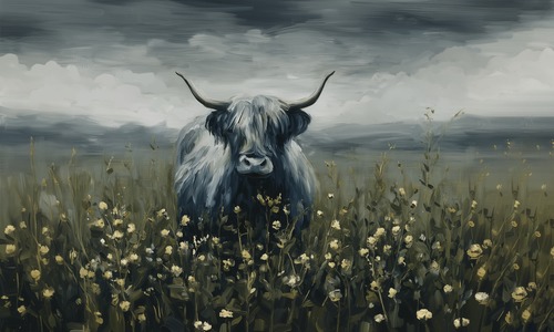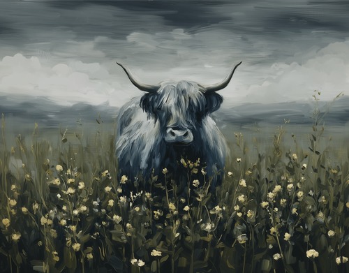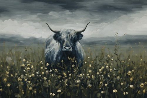 SIGNLEADER Majestic Highland Cow Portrait in Monochrome Rustic Illustrations Glam Pastel Living Room Bedroom Office